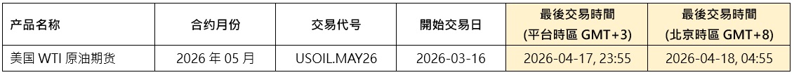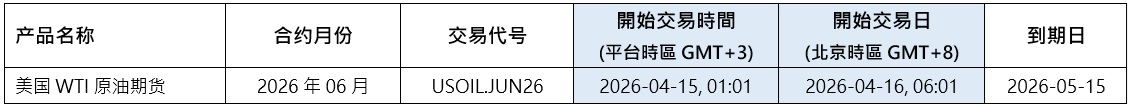 新的期货CFD合约将按照以下时间表进行交易: