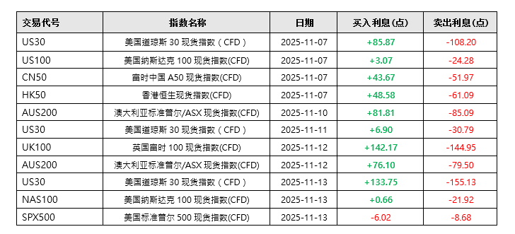 KCM Trade指数过夜利息特别调整(2025年11月07日-2025年11月13日)