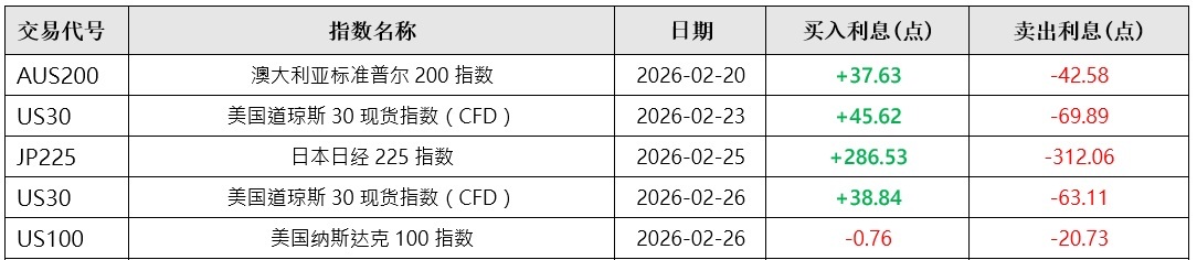 KCM Trade指数过夜利息特别调整(2026年2月20日-2026年2月26日)