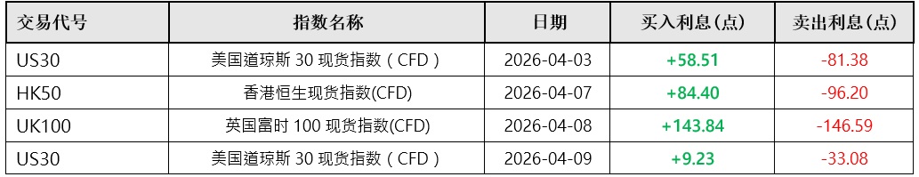 KCM Trade指数过夜利息特别调整(2026年4月3日-2026年4月9日)