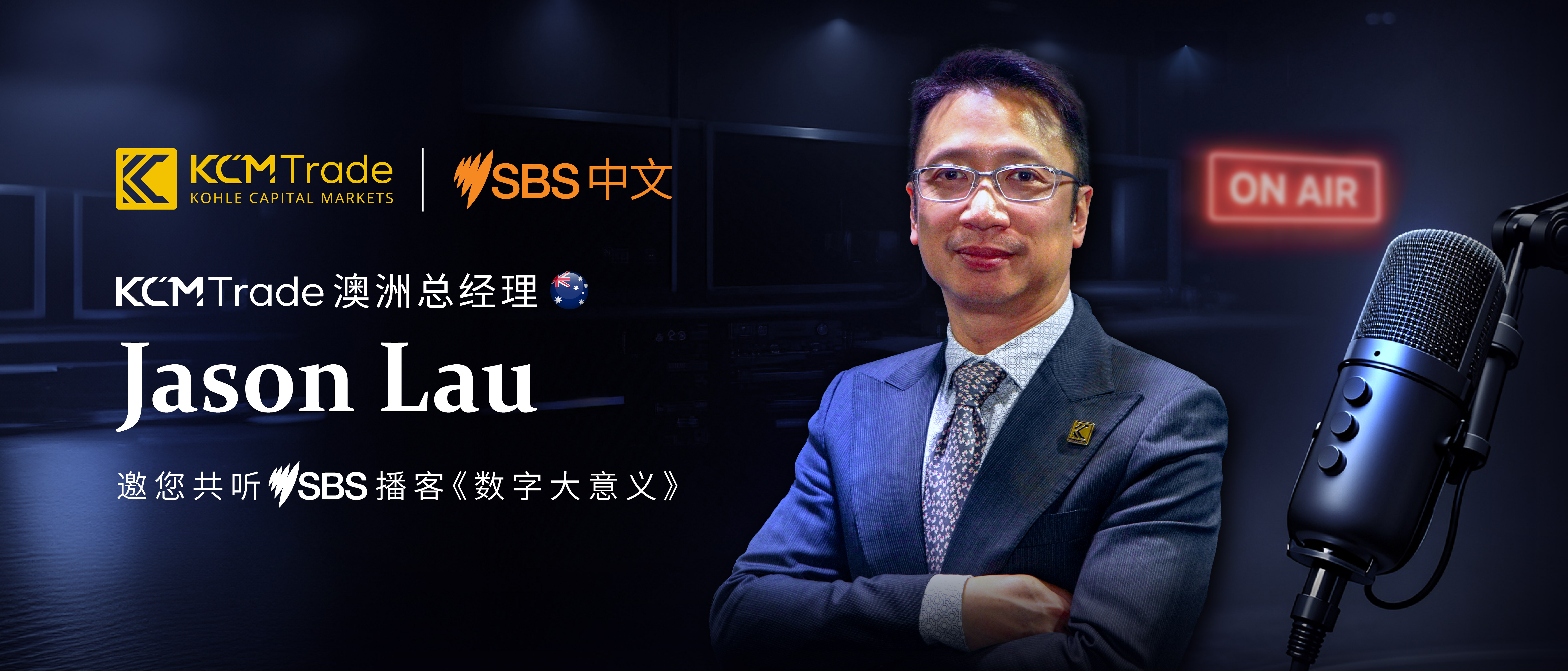 全球知名差价合约经纪商 KCM Trade澳大利亚总经理 Jason Lau ,最近应澳大利亚特别广播服务公司(SBS)邀请,主持其粤语播客《数字大意义》财经知识系列节目。