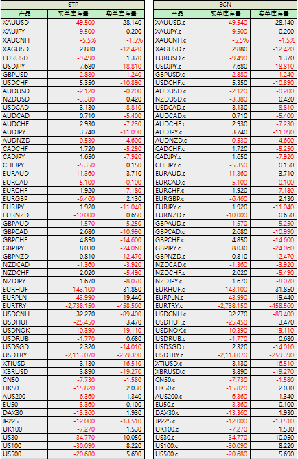 2. 以上数据由我们的流动性供货商(LP)提供,可能存在遗漏或错误。如有变动,以交易平台为准。